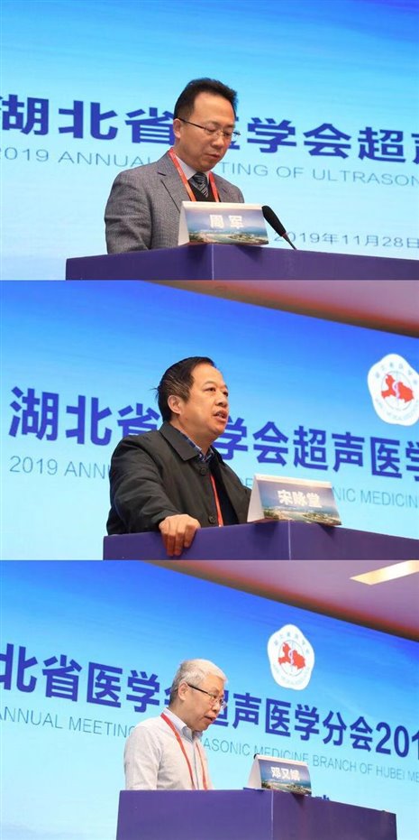 29日上午,周军教授主持开幕式并介绍到会嘉宾。随后,湖北省医学会宋咏堂副秘书长致辞。宋咏堂副秘书长表示:本次年会专家云集,将进一步提高我省超声医学的专业水平,为我省超声医学的发展做出新的贡献。湖北省医学会超声医学分会主任委员邓又斌教授致辞。他祝愿所有参会人员都能通过此次学术年会,增进交流,切磋学艺,收获超声医学学术发展的丰硕成果。